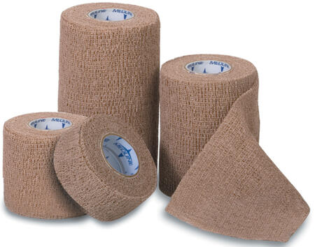 cohesive bandages are a great alternative for those who may have adhesive allergies, no tape or adhesives on hand, or sensitive skin. it does not stick well to hair, skin, or nails, but adheres to itself strongly and can stretch well. use it like you would the elastic bandage, but tape or pins are not needed because it will stick to itself.